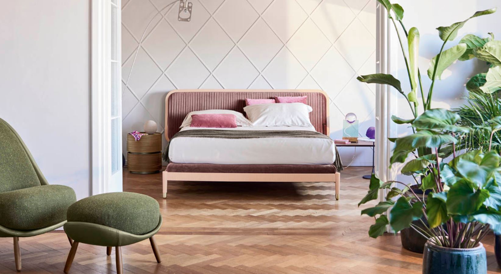 Blending classic style with modern flair, the Callas bed design is a true masterpiece. Its timeless aesthetic is elevated by a sophisticated language that nods to the past yet feels fresh and contemporary. The result is a truly eye-catching piece that exudes refinement and poise. The hand-pleated headboard finish adds an extra layer of luxury, making this bed equally stunning in its plain or upholstered versions. The fluted, lacquered wood frame rails provide a sturdy base for the soft, padded bed base, creating a sense of elegance and majesty that’s hard to ignore.