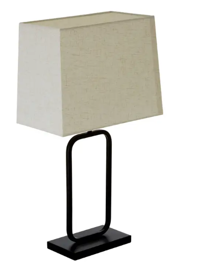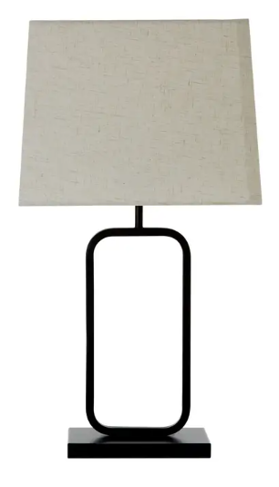 Resting on a sleek rectangular plinth, the Cazi table lamp’s black metal stand has a slim, graceful outline. The base is paired with a natural-coloured fabric shade, creating a tonal contrast with the lamp’s base. The shade tapers slightly, and softly diffuses light to provide a gentle ambience. Style it with other monochrome items.