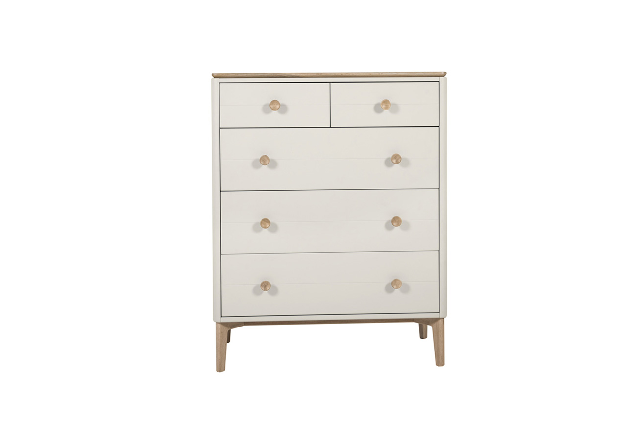 Introducing the Lowra medium chest , which is perfect for furnishing your bedroom in a modern Scandi style. It is crafted from American white oak with a natural finish to bring sophistication and timelessness into any space. This medium chest offers five deep soft close drawers for you to store your belongings, so you can keep your bedroom neat and tidy.