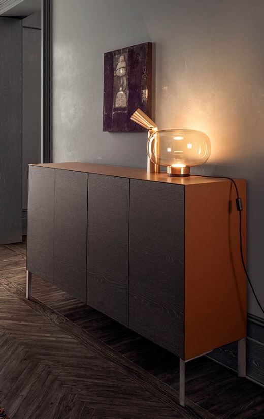 The Namilo sideboard exudes an air of sophistication and refinement, boasting a sleek and modern design that is sure to make a statement in any room. One of its most striking features is the continuous panel wrapping around the entire structure, creating a sense of luxury and monolithic elegance. The lack of handles or grips adds to the clean-lined aesthetic, replaced by a simple yet elegant push-to-open system that makes it easy to access the contents. With a wide range of finishes available, including high-gloss and matte lacquers, wood, glass, and mirrored options, as well as the original natural slate finish, the Namilo sideboard can be tailored to fit individual tastes and styles. Whether you’re looking to add a touch of modernity to a traditional space or create a bold statement in a contemporary setting, the Namilo sideboard is sure to impress.